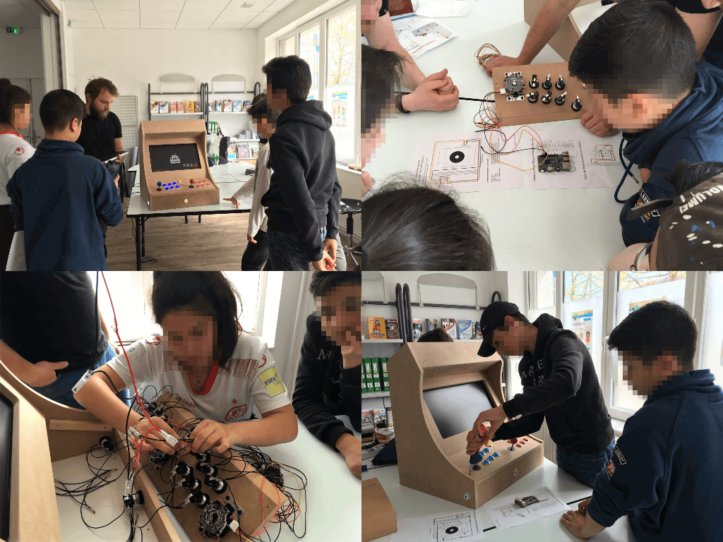 Les participant·es repartent avec la borne d’arcade qu’ils ont fabriqué, et dont ils ont appris le fonctionnement et la maintenance.