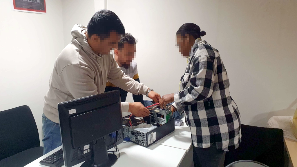 Après une expérimentation faite avec un groupe de onze femmes membres de l’association Terrain d’Entente dans les locaux des Moyens du Bord, en février 2023, ce sont huit nouvelles personnes qui seront formées à la maintenance et l’utilisation d’un ordinateur reconditionné sous Linux Mint.