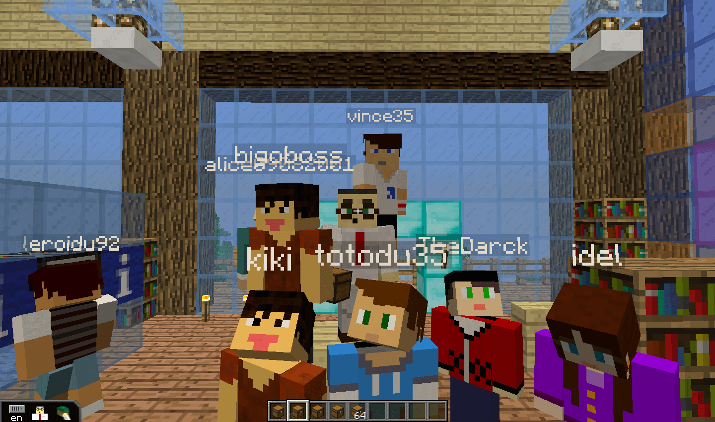Les participant-e-s jouent à Minecraft. Ils-Elles sont en pleine quête, au musée d’Art et d’Industrie. Dans Minecraft.