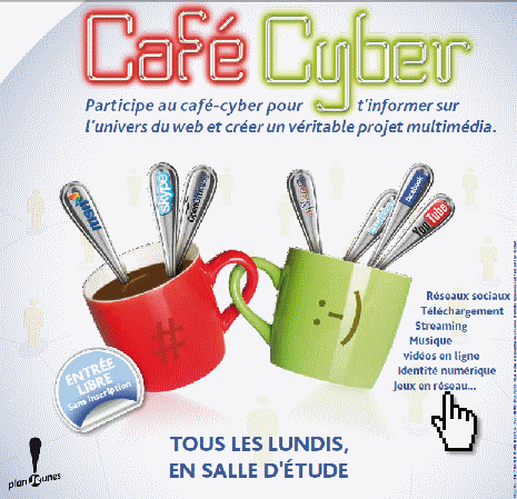 Les Cafés Cyber sont des temps de médiation numérique en collège. Initiés à l’origine par l’Espace Ressource de St-Just-St-Rambert, le dispositif a été étendu dans plusieurs collèges de la Loire avec le soutien du Conseil Général, Zoomacom y jouant son rôle de Centre Ressource Départemental.