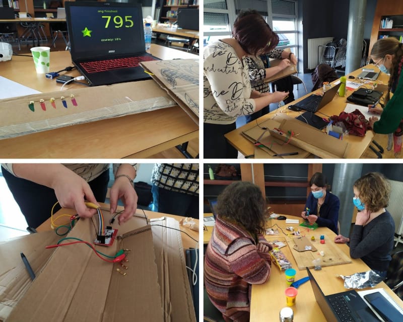 Le jeudi 4 mars, Antoine a conduit une formation pour la médiathèque départementale de la Haute-Loire autour des animations utilisant Makey Makey: découverte+projets: guitare pour jouer à Frets on Fire, borne interactive, plateau interactif pour raconter une histoire.