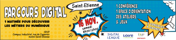 Organisée par Digital League, la matinée du 16 novembre a réuni des collégiennes et collégiens, leurs parents et les professionnels du département, pour découvrir de manière ludique et concrète les métiers d’avenir de l’industrie numérique, par le biais de conférences, d’espaces de démonstration, de jeux et d’ateliers. [Plus d’infos]
