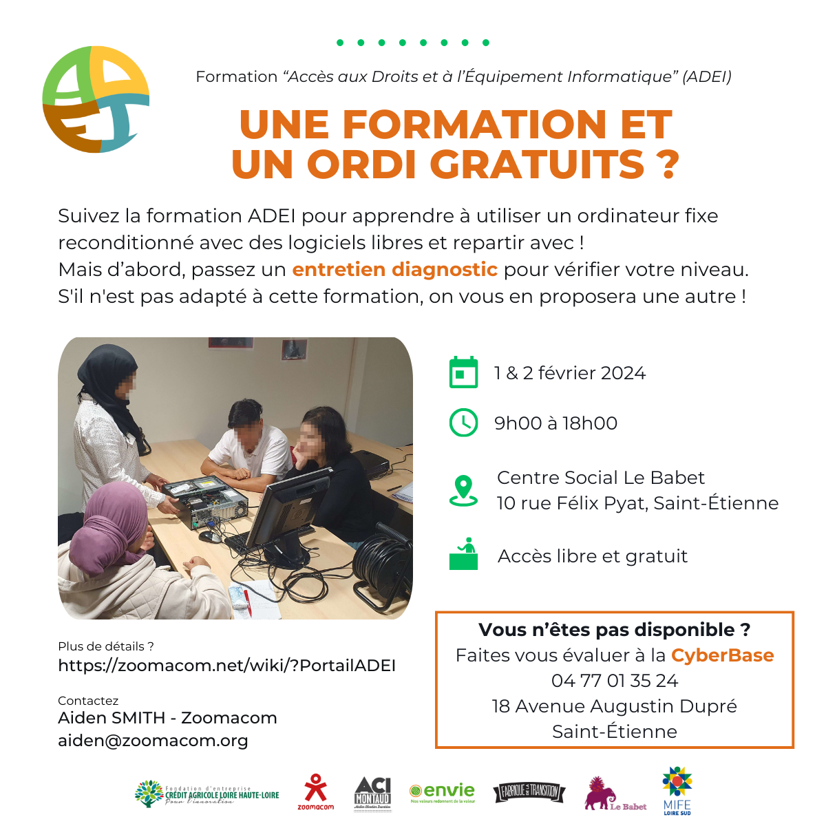 Vous pouvez orienter ces publics vers Zoomacom pour qu’ils bénéficient gratuitement du programme ADEI. (et/ou imprimer l’affiche ci-dessous et l’exposer dans votre propre structure)