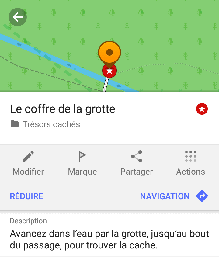 Note: dans une zone peu cartographiée précisément (campagne, parc, forêt…), placer le marqueur se fera plutôt directement sur place, mais selon les cas (en ville par exemple), cela pourra se faire à distance en navigant sur la carte.