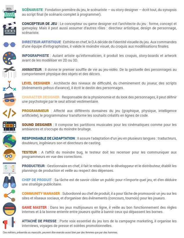 Pour plus d’informations sur le déroulé « technique » de ce projet, rendez-vous sur la ressourcerie pédagogique et d’animation de Zoomacom à l’adresse suivante : https://zoomacom.net/wiki/?LesMetiersDuJeuVideo