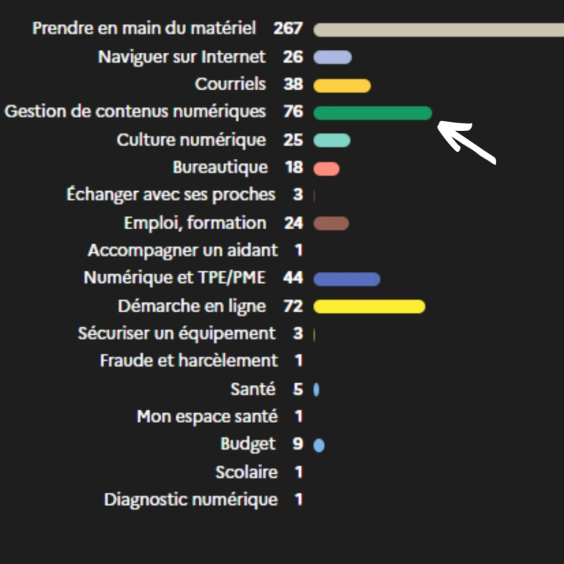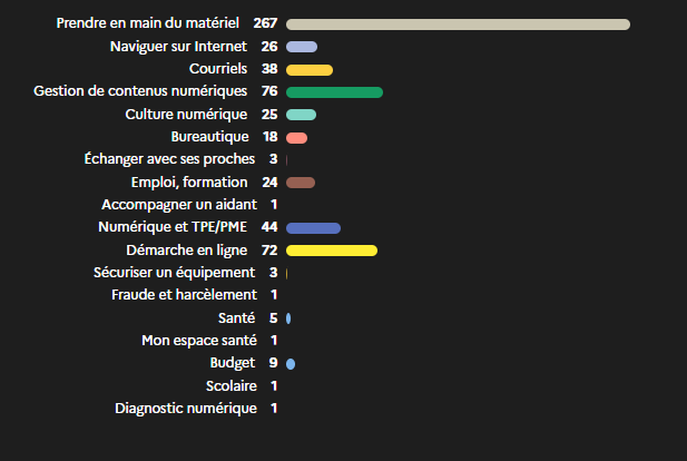 Ici on peut observer que la thématique « Prendre en main du matériel numérique » est la plus abordée.