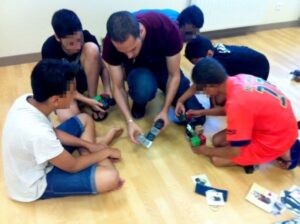 La découverte s’est déroulée dans un gymnase afin de permettre aux jeunes de manipuler les Cubelets à l’aise sans risquer de les faire tomber.