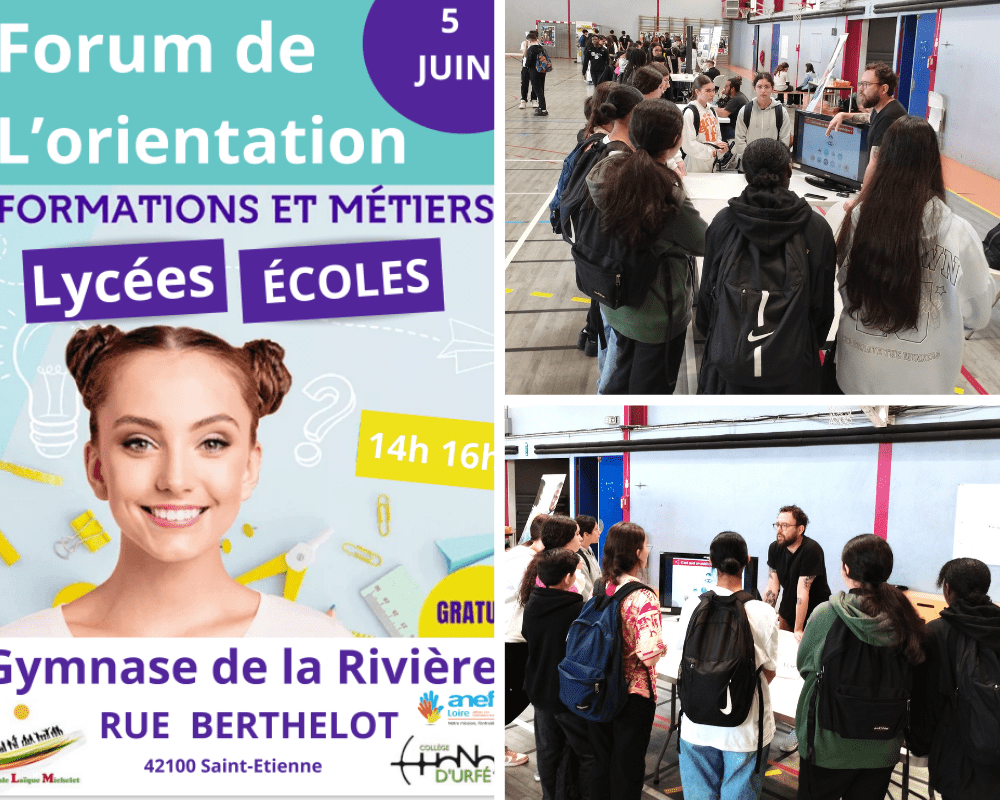 L’Amicale Laïque Michelet en partenariat avec la Promeneuse du Net Jennifer PONCET, Éducatrice Spécialisée à l’ANEF de la Loire ont organisé le mercredi 5 juin le FORUM DE L’ORIENTATION au gymnase de la rivière, rue Berthelot à Saint-Etienne auquel de nombreuses associations stéphanoises ont répondu présent.