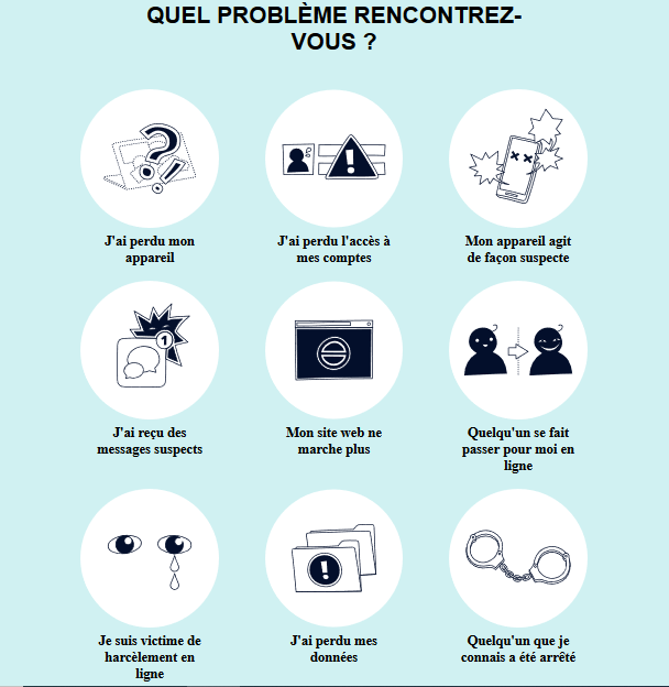 Sur cette page d’accueil, 9 urgences numériques des plus courantes sont listées.