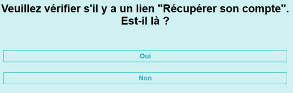 Dans cette fenêtre, il vous est demandez de vérifier s’il y a un lien « Récupérer son compte« . Si vous l’avez vous cliquez sur Oui.